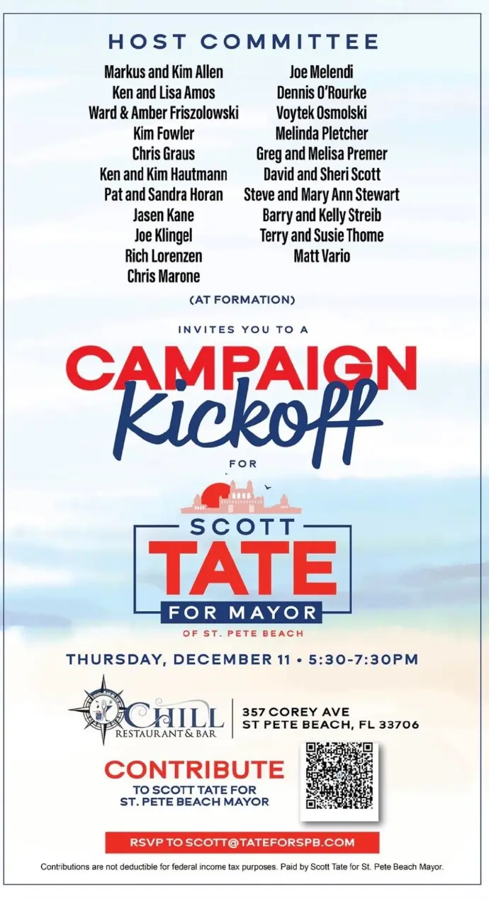 According to public records, Tate has owned a home St. Pete Beach since 2021. That matters — not because newcomers aren’t welcome, but because history matters. Understanding who fought these battles, who ignored residents, and who sided with developers is essential to judging whether a candidate is credible or simply convenient.